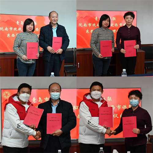 会上,青岛市侨联分别与陇南市委统战部和定西市侨联签订了《加强青·陇协作 开展对口支援协议书》《加强青·定协作 开展对口支援协议书》,青铁体育与陇南市委统战部、定西市侨联签订了《“足球援助·侨界助力”战略合作协议》,青岛机器人训练基地与陇南市委统战部、定西市侨联签订了《器材捐赠协议》,青岛市侨联、青岛青少年机器人基地向陇南市委统战部、定西市侨联捐赠了价值12万元的足球、训练服和40套价值7万元的人工智能编程机器人及课件。