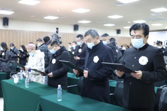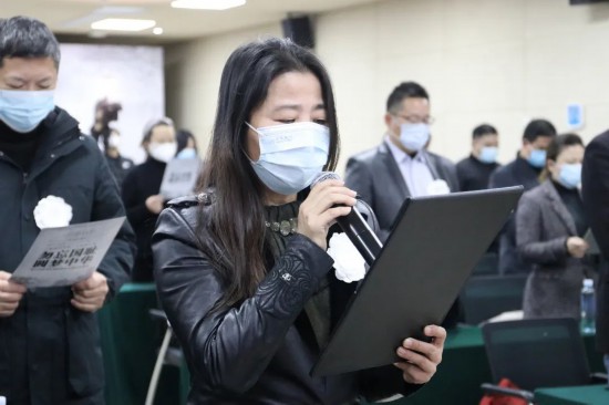 上午10时,2022年南京大屠杀死难者海内外同步悼念仪式在中国科举博物馆举行,现场50名侨界代表胸戴白花,参与仪式。仪式由南京市侨联副主席许嘉明主持,大家共同奏唱中华人民共和国国歌。