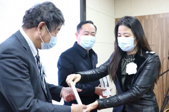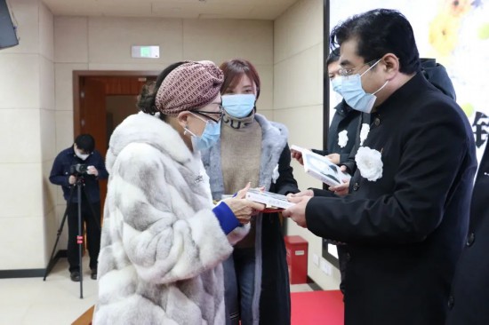 南京市侨联党组书记毛银玲与中国侨联海外顾问张素久共同向现场侨领、归侨侨眷、留学生赠送书籍《张纯如——无法忘却历史的女子》。