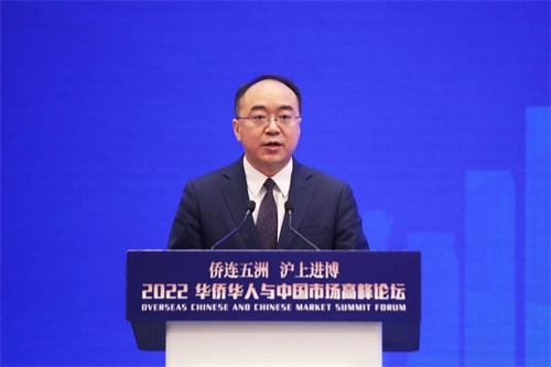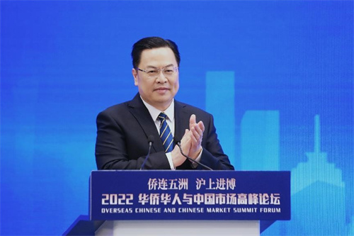 11月7日上午,由中国侨联主办、上海市侨办和上海市侨联承办的“侨连五洲·沪上进博”——2022华侨华人与中国市场高峰论坛在国家会展中心(上海)举行。中国侨联党组书记、主席万立骏,党组成员、副主席程学源,上海市委常委、统战部部长陈通,上海市副市长陈群,以及来自38个国家的100余名海外侨领和侨商代表出席。