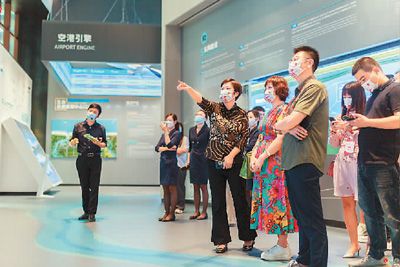 逐梦自贸港考察团一行35人参访海口江东新区展示中心。