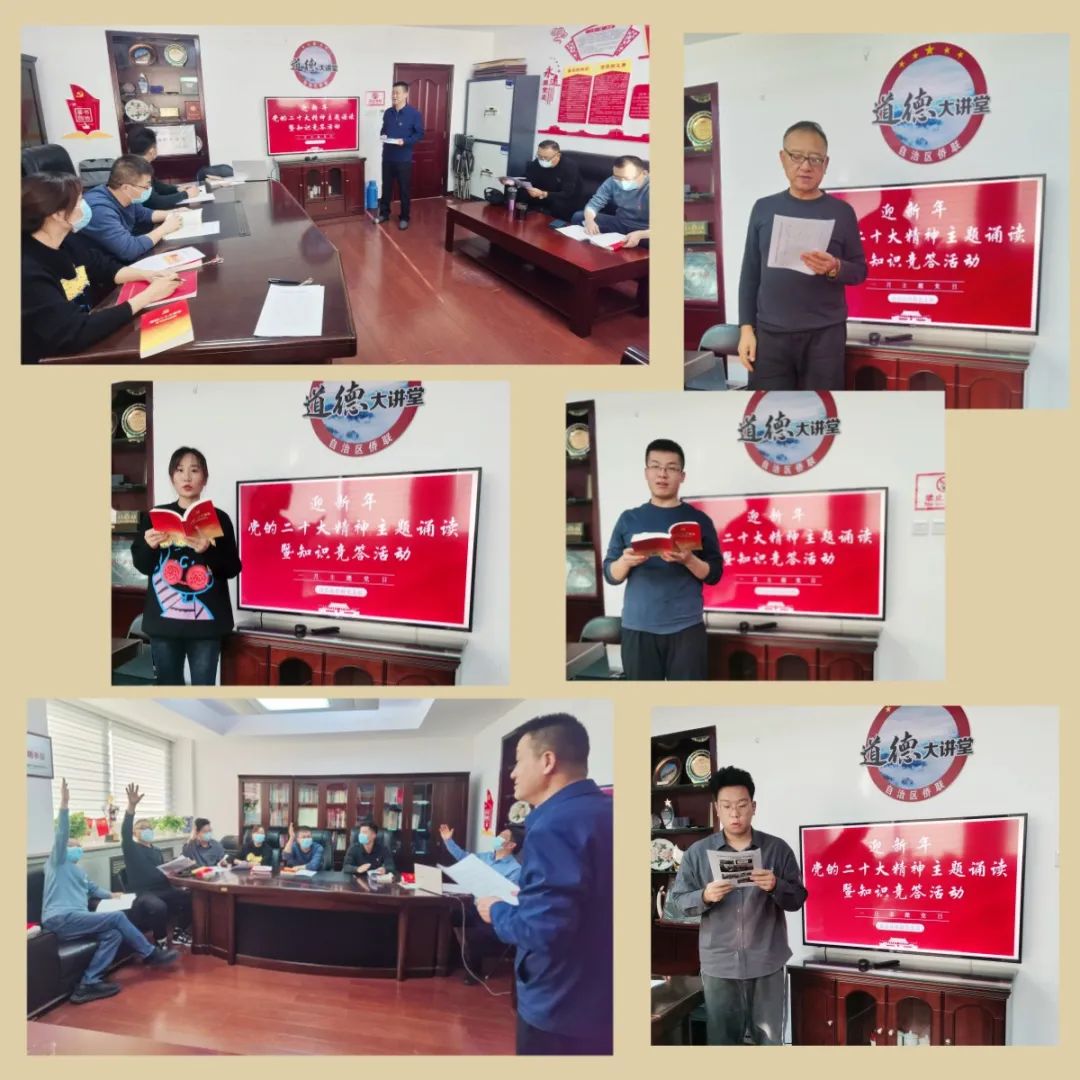 活动中,大家通过读原著、学原文、悟原理,声情并茂诵读党的二十大报告提出的新思想、新理念、新观点,结合自身感悟,共同分享学习党的二十大精神心得体会。知识竞答围绕党的二十大报告主要内容,分问答和抢答两个环节,参加人员积极踊跃抢答,展现了个人扎实学习效果和良好精神风貌。