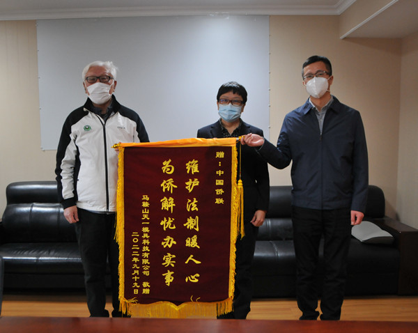 权益保障部部长张岩、副部长马鑫接待了洪先生。张岩部长表示,依法维护侨胞侨益是中国侨联的重要职责。洪先生送来锦旗表达的不仅是侨胞对中国侨联的信赖,更是对侨联维护侨益工作的激励。权益保障部将继续按照职责要求,坚持为侨服务宗旨,为侨胞提供热情和专业的法律服务,切实为侨胞排忧解难。