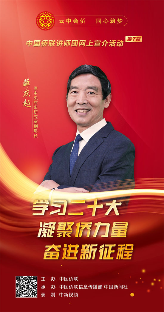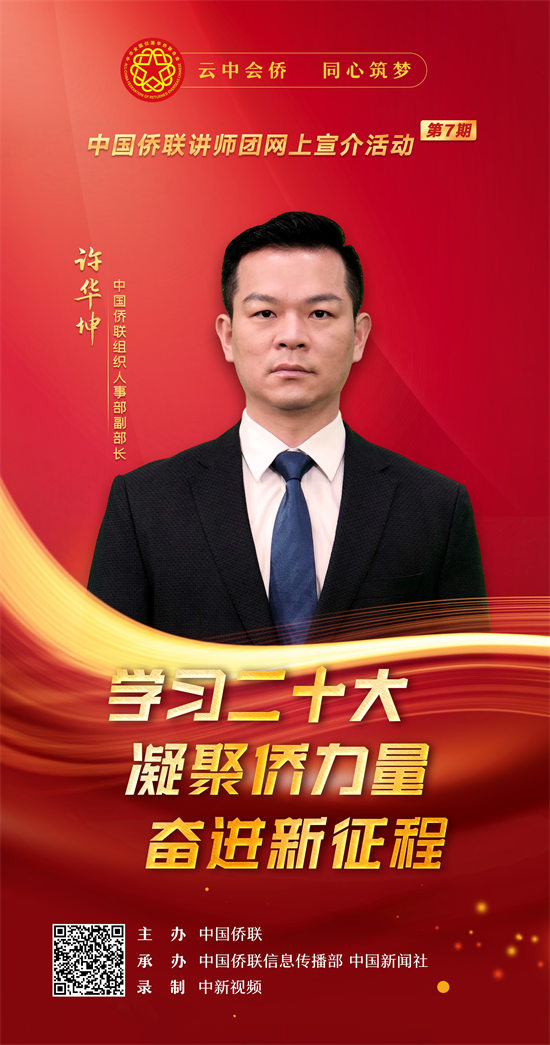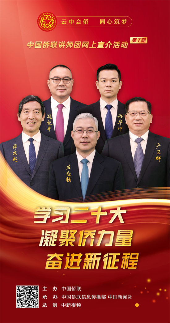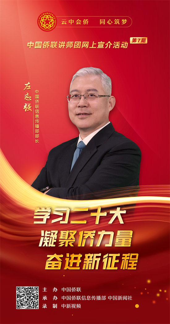 1月18日,以“学习二十大·凝聚侨力量·奋进新征程”为主题的中国侨联讲师团(第七期)网上宣介视频正式上线。视频旨在深入学习贯彻习近平新时代中国特色社会主义思想,深入学习宣传贯彻党的二十大精神,深刻领悟“两个确立”的决定性意义,增强“四个意识”、坚定“四个自信”、做到“两个维护”,进一步加深对习近平新时代中国特色社会主义思想的领悟,加强对马克思主义中国化时代化、中国式现代化、全面从严治党等重大问题的认识,深刻理解党的二十大对全面建设社会主义现代化国家作出的战略部署,在侨界兴起学习宣传贯彻热潮,把思想统一到党的二十大精神上来,把力量凝聚到党的二十大确定的各项任务上来。