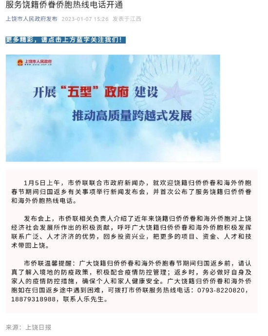(开通服务饶籍侨眷侨胞热线电话)