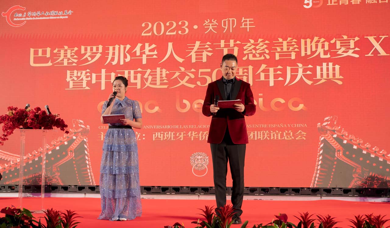 西班牙华人华侨社团联谊总会秘书长(慈善执行主席)陈菲菲女士做工作报告列举历届慈善晚宴主题:2012龙年,以“弘扬时代精神,展望美好未来”为主题,举办了首 届巴塞罗那华侨华人春节慈善晚宴; 2013蛇年,以“团结共济战胜危机”为主题;2014马年以“和谐合作,共同发展”为主题;2015羊年,以“创业正当时,成就新梦想”为主题;2016猴年,以“同心同德,侨行天下”为主题;2017鸡年,以“携手青年共创未来”为主题;2018狗年,以“侨商齐聚共创未来”为主题;2020鼠年,以“新时代,新使命,汇聚侨声,和谐发展”为主题; 2021年虽然是疫情,我们依然坚持举办以“同舟共济、重新起航”为主题的慈善活动。2023兔年,以“五十正青春,融合创未来”为主题。