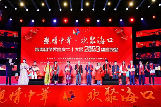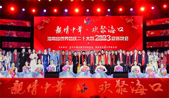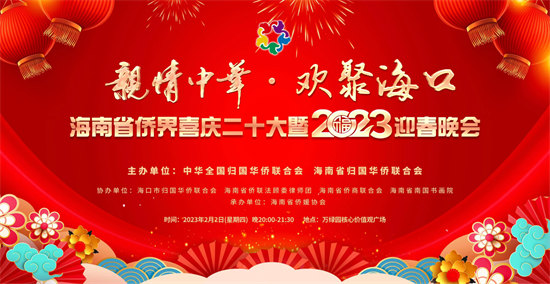 为宣传贯彻党的二十大精神,凝聚海南侨界力量,发挥海南侨乡优势、服务海南自贸港高质量发展,2月2日晚,中国侨联与海南省侨联在海口共同举办“亲情中华·欢聚海口”海南省侨界喜庆二十大暨2023迎春晚会,礼赞党的二十大,喜庆新春佳节。中国侨联文化交流部副部长邢砚庄及海南省委统战部(省侨办)、省人大华侨外事工作委员会、省政协港澳台侨外事委员会、致公党海南省委和省侨联等单位领导出席晚会。归侨侨眷、海外侨胞代表、各级侨联干部以及各界群众近2000人现场观看演出。还有海内外30多万人次通过新华社、人民网、中新网、海南日报、海南广播电视总台、凤凰网、海南华侨、国际旅游岛商报、抖音等国家级、省市主流媒体及融媒体等视频社交媒体在线欣赏演出直播。