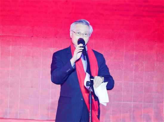 日本海南总商会会长符明潮在晚会上作为侨胞代表发言
