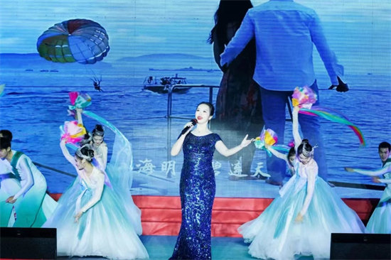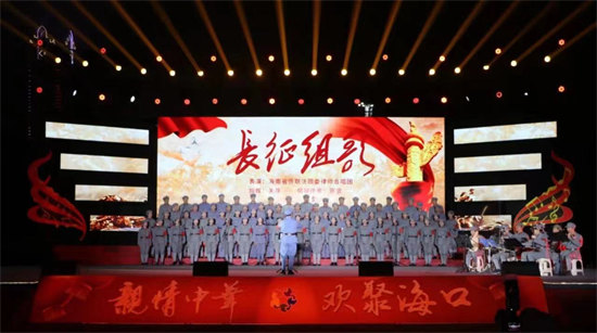 整场晚会集声乐、舞蹈、器乐、杂技、相声等节目于一体,内容丰富、精彩纷呈,充分展现了中国传统文化及海南特色文化的魅力。现场观众掌声连连,欢声笑语不断。开场舞《花开琼州》生动体现海口诗情画意的自然人文生态之美;海南特色歌曲《渔家姑娘在海边》《迷人的海岛》等融合器乐演奏,让人如痴如醉,畅享生命的灿烂;来自10个国家的华侨用多国语言演唱《我爱你中国》,表达广大侨胞“心系祖国,同根同梦”的家国情怀;《只此青绿》场景虚实交错、情感古今交融,让观众领略到新时代“千里江山”的壮美,从心底油然而生作为中华文化传承者的骄傲和自豪感;侨界书法家们现场挥毫,用传统艺术形式表达侨界听党话、感党恩、跟党走的坚定意志;相声表演《劳动号子》通过惟妙惟肖模仿劳动人民工作中发出的吆喝声,体现出劳动人民的乐观精神和大无畏的英雄气概;海南省侨联法顾委律师合唱团表演的节目长征组歌——《四渡赤水出奇兵》《到吴起镇》朗诵铿锵有力、歌唱气势恢宏,讴歌了中国工农红军不屈不挠、无私无畏的革命精神,闪动着最美的革命浪漫主义精神。最后,歌伴舞《欢聚一堂》《母亲是中华》将晚会演出现场氛围推向高潮,掌声、欢呼声不断,点燃了广大侨界群众为建设具有世界影响力的中国特色自由贸易港而努力奋斗的激情。