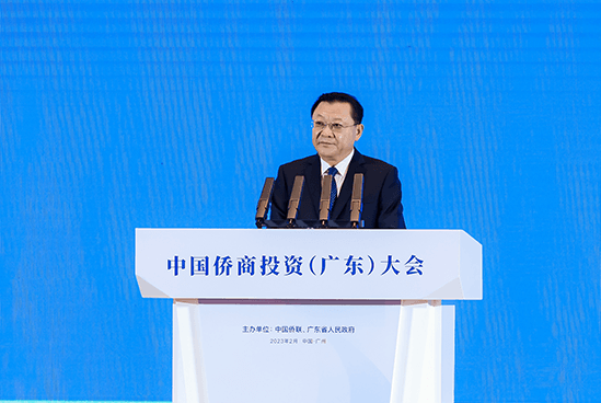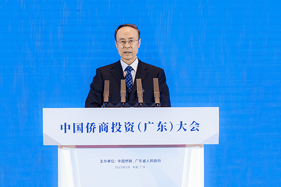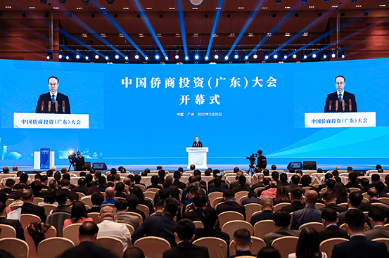 2月25日,中国侨商投资(广东)大会在广州隆重开幕。大会由中国侨联和广东省人民政府联合举办。中央政治局委员、广东省委书记黄坤明,中国侨联党组书记、主席万立骏,广东省委副书记、省长王伟中,广东省人大常委会主任黄楚平,广东省政协主席、省委常委、广州市委书记林克庆,广东省副省长张新,中国侨联党组成员、副主席连小敏,全国政协常委、中国侨联顾问、中国侨商联合会常务副会长李卓彬等出席开幕式。广东省委常委、统战部部长王瑞军主持大会。广东各地级市主要负责同志,横琴、前海、南沙和广东省有关部门负责同志,来自五大洲50多个国家和地区的侨商嘉宾和侨界人士等600多人现场出席大会。