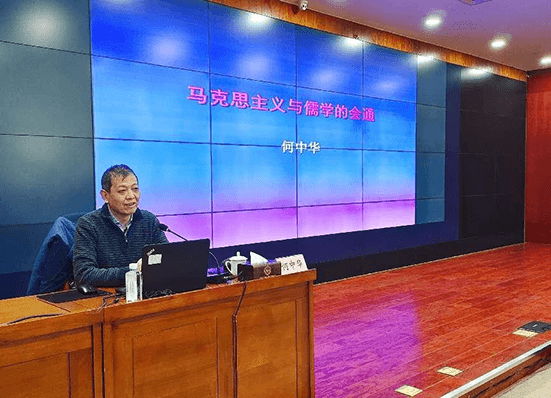 何中华教授从实现三个“结合”:“马克思主义基本原理同中国具体实际的结合;社会主义同市场经济的结合;马克思主义基本原理同中华优秀传统文化的结合”为切入点,从马克思唯物史观的内涵和中国社会本身的历史际遇分析了马克思主义与儒学相遇的必然性,又从时代性和民族性两个维度解读了马克思主义与儒学的冲突与相通。何教授的讲授融汇中西、贯通古今,视角独特,立意深远,使大家对总书记提出的“两个结合”:“坚持和发展马克思主义,必须同中国具体实际相结合,同中华优秀传统文化相结合”,有了全新的认识。