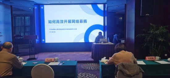 3月21日至22日,江苏省侨联、省华侨公益基金会(以下简称“基金会”)在宁举办全省侨界公益业务培训班。江苏省侨联原副主席镇翔,省侨商总会副会长马明,省侨联经济科技部一级调研员、省侨商总会秘书长,基金会秘书处负责人马云鹏和全省侨联系统、全省侨界部分爱心人士约45人参加培训。培训班邀请北京向荣基金会秘书长丁广泉,江苏天诚会计事务所所长王正荣,省残疾人福利基金会网络募捐部部长万连根分别围绕战略性筹款、公益事业相关规定解读和网络筹款实操三个方面进行授课,新浦化学(泰兴)有限公司和基金会曈欣公益专项基金的负责人作交流分享。