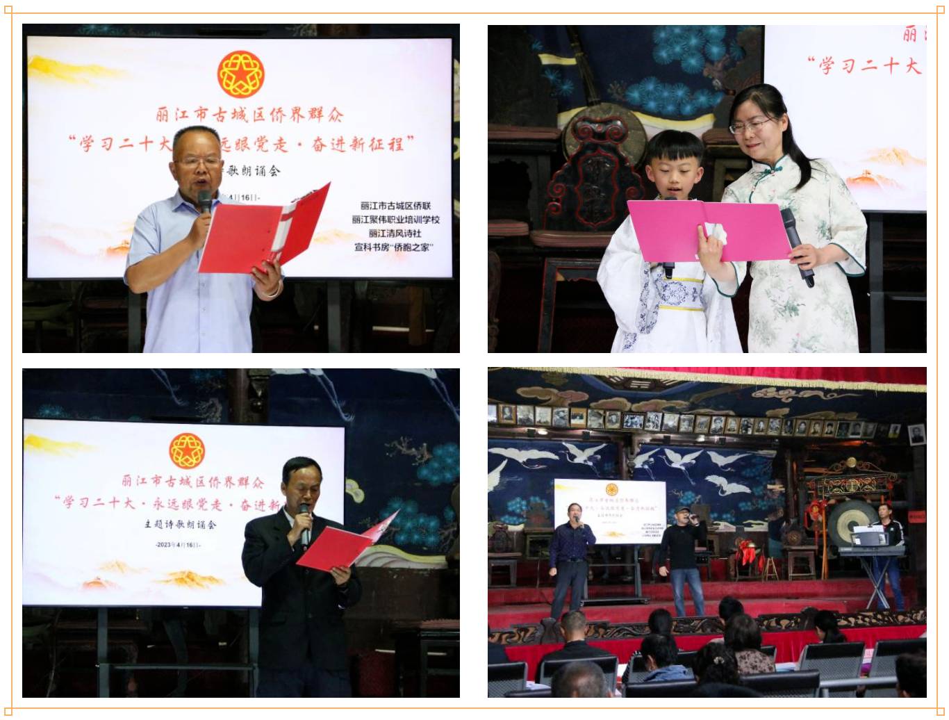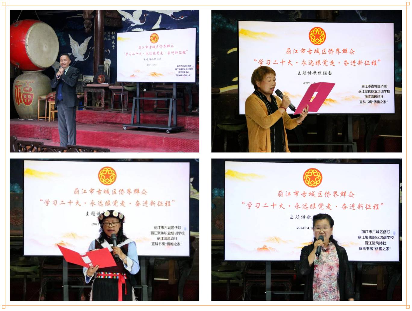 近日,丽江市古城区侨界群众“学习二十大、永远跟党走、奋进新征程”诗歌朗诵会在宣科书房“侨胞之家”举行。
