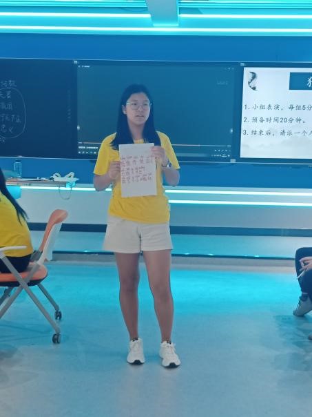 7月10日早上,实训楼804教室里传出阵阵欢声笑语,原来是周捷慧老师正在给华裔们上一堂别开生面的汉语视听说课。周老师以“英雄”为主题,借助《小妖怪的夏天》和《孤勇者》,连贯古今诠释了“英雄”的传统文化内涵以及时代精神。学生在观看视频和小组表演中多维解读英雄的含义,并在后续的歌词解说和强有力的唱歌中进一步体会英雄的时代精神。