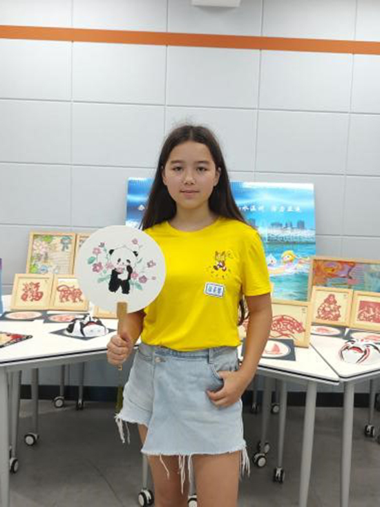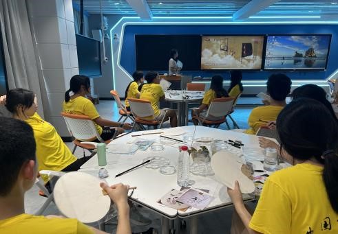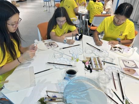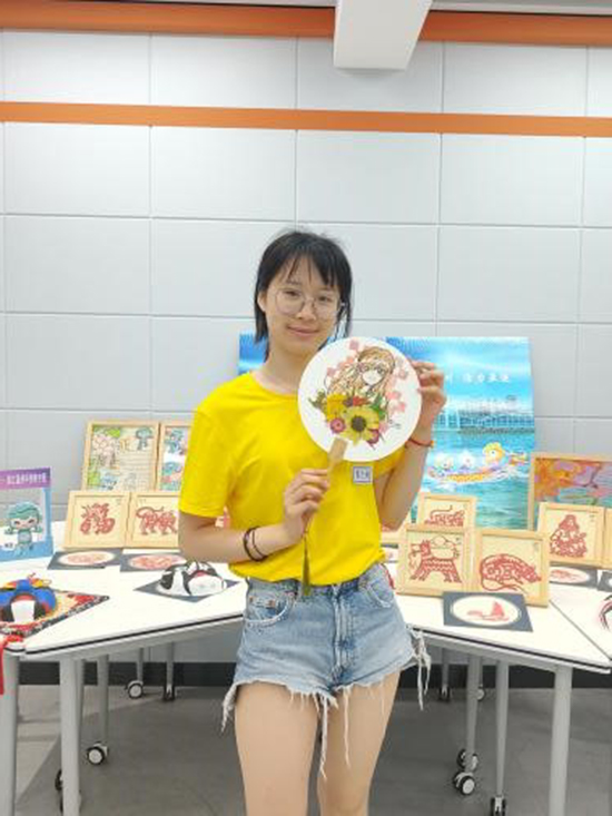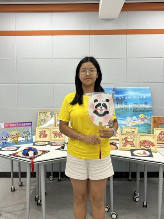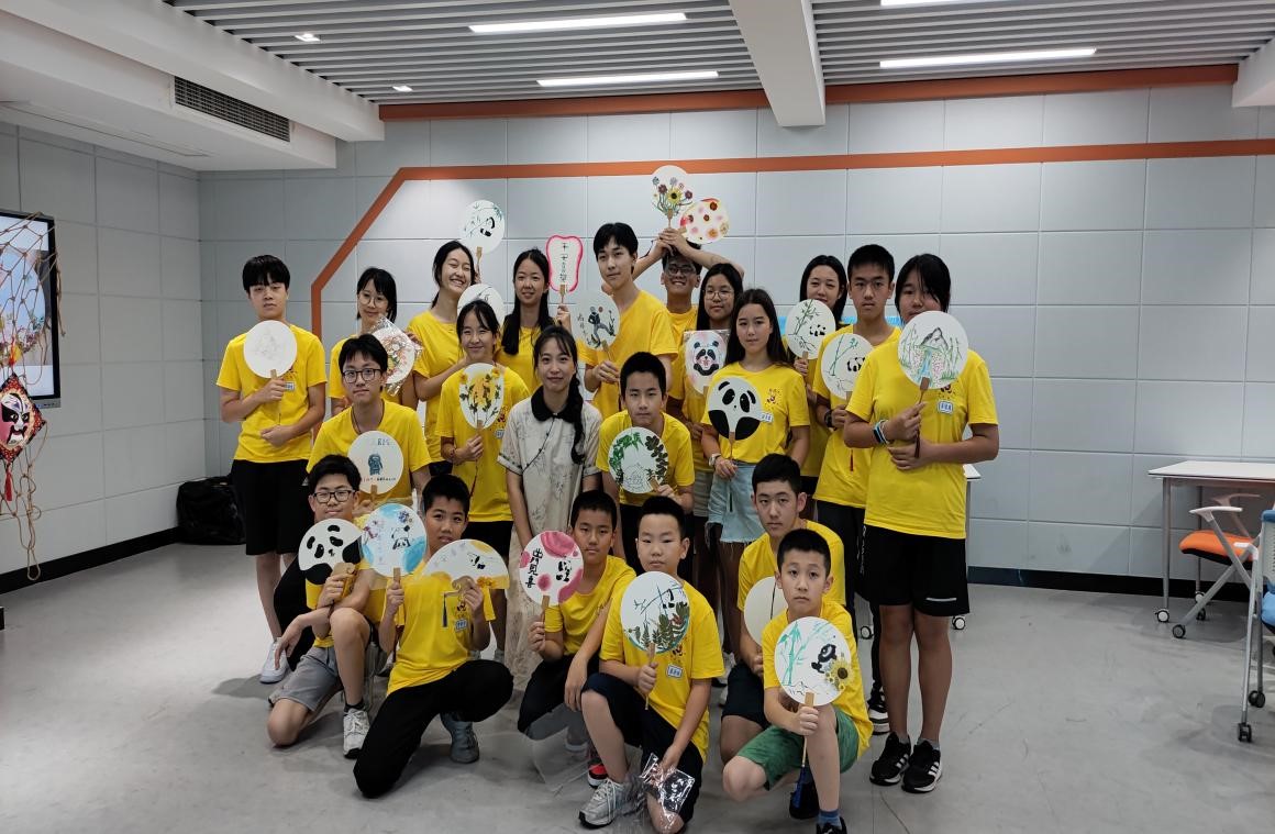 下午,黄舒曼老师为华裔青少年们带来了一堂妙趣横生的中华古风团扇DIY课。首先,黄老师浅显易懂地向华裔青少年介绍了团扇的历史、结构、形状以及团圆美好的寓意。华裔青少年们为这国之瑰宝所散发的浓浓中国美深深吸引。随后,营员们细细勾画,创意无限,或利用色彩,或利用干花,或绘画熊猫,或画疫抗英雄,在空白的团扇中绘出自己独一无二的作品。一把把用心用情制作的团扇,一份份华裔青少年自由的创作,让华裔青少年夏令营更添古韵之美!来自美国的营员胡卉芳羞涩地微笑道:“很喜欢这节课,特别喜欢绘画。”