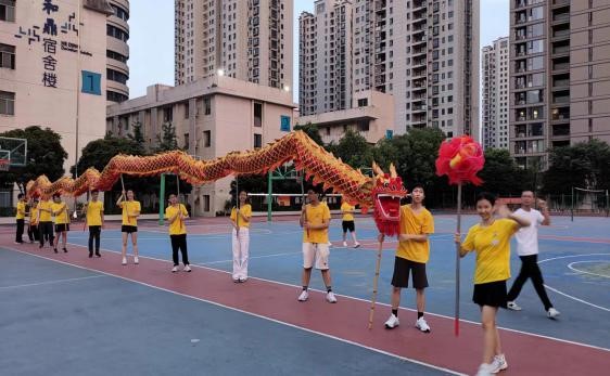 夜幕下,操场上隐约出现一条龙,原来是经验丰富的吴震玦珏老师在带领华裔青少年们体验舞龙活动。在吴老师的指导下,龙忽而上下左右翻腾,忽而慢慢盘旋头顶,忽而一字排开,忽而绕成一个大圆……龙珠持守人,来自意大利的薛之涵手舞足蹈地说道:“舞龙实在是'泰裤辣',就是有点费手哈哈。”舞龙是中华传统文化体育项目,我校舞龙队曾获全国青少年舞龙舞狮锦标赛男子甲组舞龙规定套路第一名。华裔青少年们在一挥一划之中,强健了体魄,更是感受着舞龙的魅力,体会中华根脉之精神——自强不息、团结奋进。