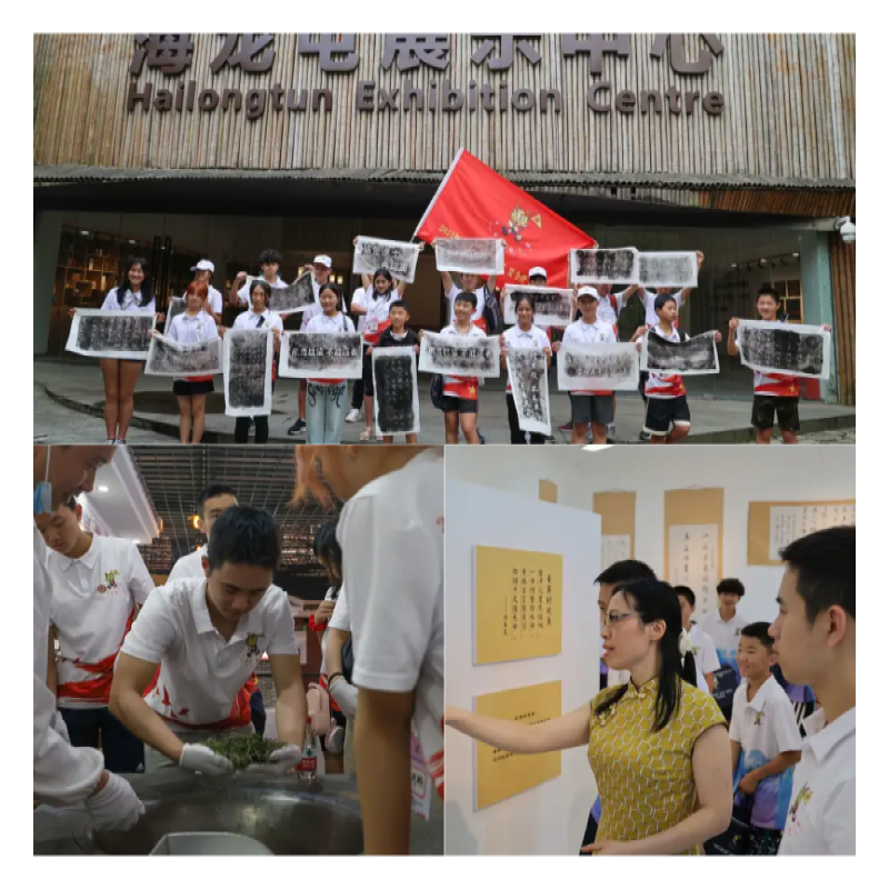 营员们还深入遵义各地研学,深刻感受到了浓浓的”乡愁“。在余庆县大乌江镇,营员们体验了“一双手,一把泥,捏出世间百牛情”的泥牛黄非遗文化。在湄潭县茶工业博物馆、茶海之心,营员们在观摩了茶叶生产工序后,也纷纷戴上手套,翻炒茶叶,给新鲜采摘的茶叶杀青。在浙大西迁历史陈列馆,营员们认真聆听了“文军西迁”的故事。在遵义会议纪念馆,营员们了解了长征精神、遵义会议精神,感叹中国共产党人的初心与使命。在世界文化遗产海龙屯遗迹,营员们赞叹山川的磅礴。在播州区,营员们走进大发渠,了解“时代楷模”黄大发“绝壁凿天渠”的事迹。在花茂村,营员们学习了陶艺制作。在仁怀市茅台镇,营员们参观了中国酒文化城,观摩了白酒生产过程。