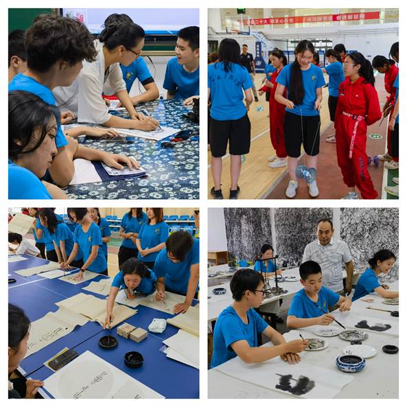本次夏令营新疆兵团营十分重视对文化的传播和发扬,安排了兵团的三所学校分别为营员们讲授中国古典文学、中国传统艺术、中国特色体育项目,营员们学得津津有味,感到乐此不疲。兵团二中的同学们朗诵原创古文,精神饱满,激情澎湃。在石河子高级中学,营员们按照兴趣分为四个小组,学习书法、国画、脸谱和剪纸。而在五家渠第一中学,社团的同学们一对一教大家抖空竹,营员敖欣岚说:“虽然以前见过空竹,但是在五家渠第一中学见到的空竹表演非常精彩。我很兴奋能和同学们一起学习空竹,以后我会继续练习。”
