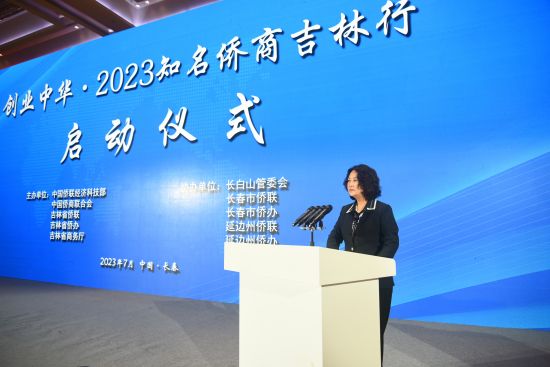 7月26日上午,创业中华·2023知名侨商吉林行活动启动仪式在长春市举行。中国侨联副秘书长、经济科技部部长赵红英出席启动仪式并致辞,她代表中国侨联和万立骏主席对活动的举办表示祝贺,向吉林省委、省政府对侨联工作的支持表示感谢。她在致辞中提出三点建议,一是发挥侨的作用,在推动我国更高水平对外开放中展现新作为,积极为国内外企业交流合作牵线搭桥,助力推动建设更高水平开放型经济新格局。二是激发品牌效应,在助力推进中国式现代化进程中取得新成就。侨联和侨商组织要不断完善体系建设,提升服务能力和水平,当好侨胞“贴心人”和侨务工作“实干家”。三是深度了解吉林,在服务地方经济建设中实现事业新发展,为助力吉林全面实施“一主六双”高质量发展战略作出侨界贡献。