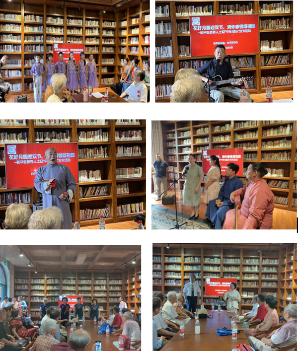 会后,在昆明路小学少儿合唱团演唱的《我和我的祖国》嘹亮的歌声中拉开序幕,天津城建大学相声社表演了相声《秋风送爽迎国庆》、著名音乐制作人,天津琴愿音乐文化主理人赵润禄献出精彩节目。吉他弹唱《奉献》、快板书《红柳楼》、南营门街道侨联表演唱《大水漂来天津卫》、五大道街侨联的诗朗诵《英雄》、老归侨们还动情的演唱了印尼歌曲《哎呦!妈妈》都赢来大家的阵阵掌声。天津电视台鱼龙百戏栏目组进行了全场的录制,将制作成“天涯共此时”海内外华人庆中秋专辑,将在中秋节期间向海内外进行播出。