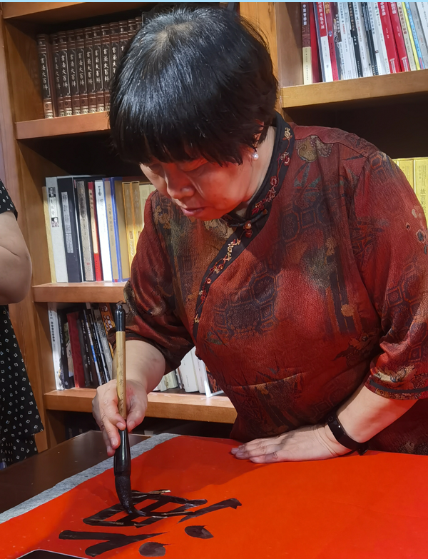 天津市劳动模范,天津市政协委员,和平区侨联“中华民族传统文化交流使者”,书法家刘智莉女士在活动现场挥毫写下“海上生明月 天涯共此时”书法作品。