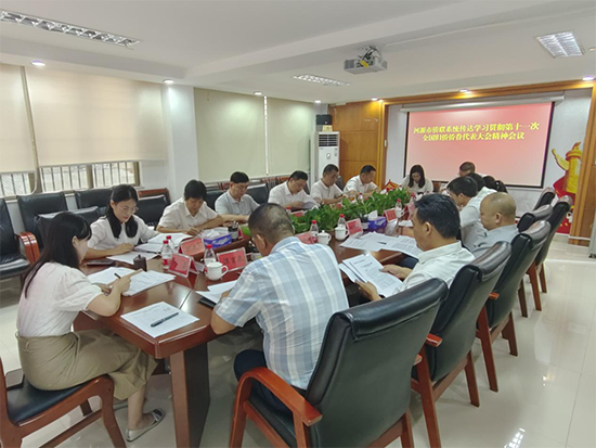 河源市侨联党组书记邹仕选介绍了第十一次全国归侨侨眷代表大会概况,传达学习了李希同志代表党中央作的题为《为强国建设民族复兴凝聚起侨界团结奋斗的磅礴力量》致词、万立骏主席代表中国侨联在第十一次全国归侨侨眷代表大会上作的题为《以习近平新时代中国特色社会主义思想为指导 团结凝聚广大归侨侨眷和海外侨胞为全面建设社会主义现代化国家而奋斗》的工作报告及阿东书记代表群团组织向大会致的贺词。他指出,此次大会规格高、规模大、组织密、影响广、意义大,对于侨联组织更好履行职责使命,发挥桥梁纽带作用,团结凝聚广大归侨侨眷和海外侨胞为全面建设社会主义现代化国家、全面推进中华民族伟大复兴、推动构建人类命运共同体而共同奋斗,具有十分重要的意义。全市侨联系统要在市委的正确领导下和省侨联的关心指导下,抓好学习贯彻第十一次全国归侨侨眷代表大会精神工作,为加快实现绿色崛起,深入推进幸福和谐美丽河源建设贡献侨界力量。