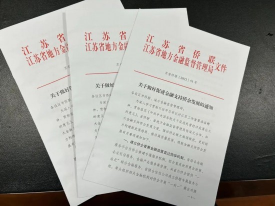 近日,江苏省侨联与江苏省地方金融监督管理局联合印发《关于做好促进金融支持侨企发展的通知》,发布金融助企四方面举措,加大金融支持侨企发展力度,推动侨企做大做强做优,更好助力构建新发展格局、推动高质量发展。