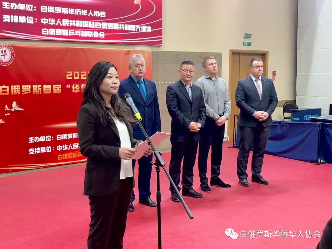 大赛邀请中国驻白俄罗斯大使馆临时代办罗世雄公使衔参赞和白俄罗斯乒乓球协会主席宣布比赛开始。