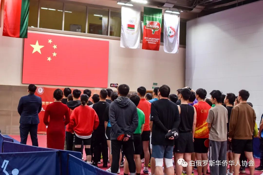 在国歌声中首届华侨杯乒乓球比赛圆满结束!