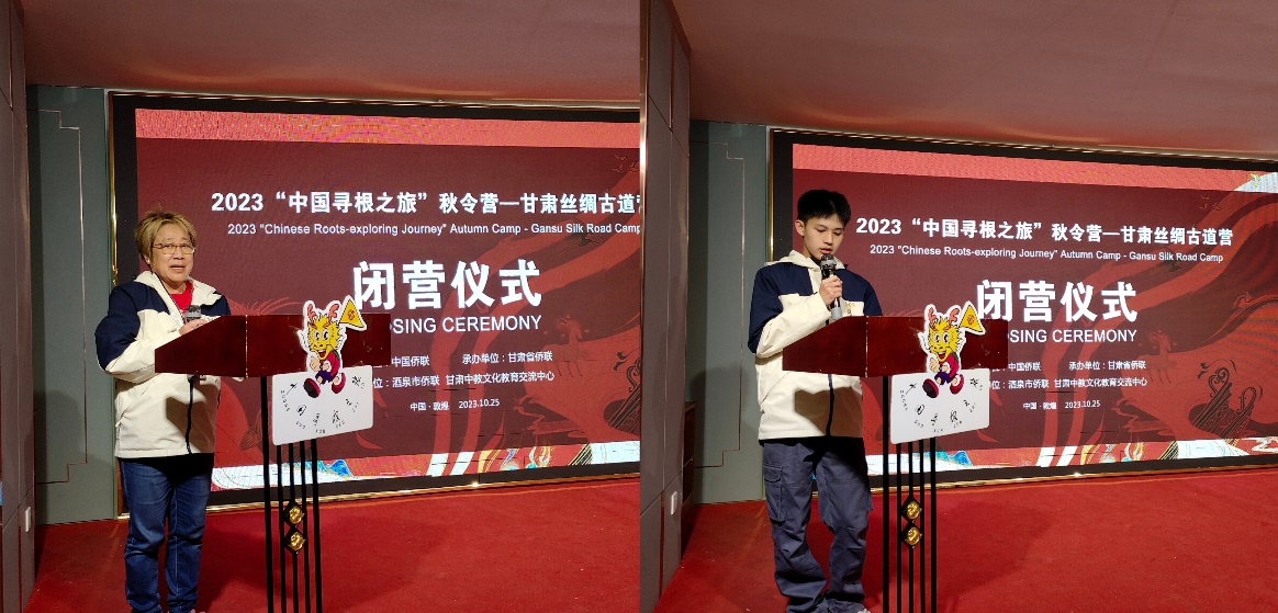 中国侨联文化交流部副部长郭启华,甘肃省侨联党组成员、副主席徐妍丽,酒泉市侨联主席冬梅,共同出席了闭营仪式。