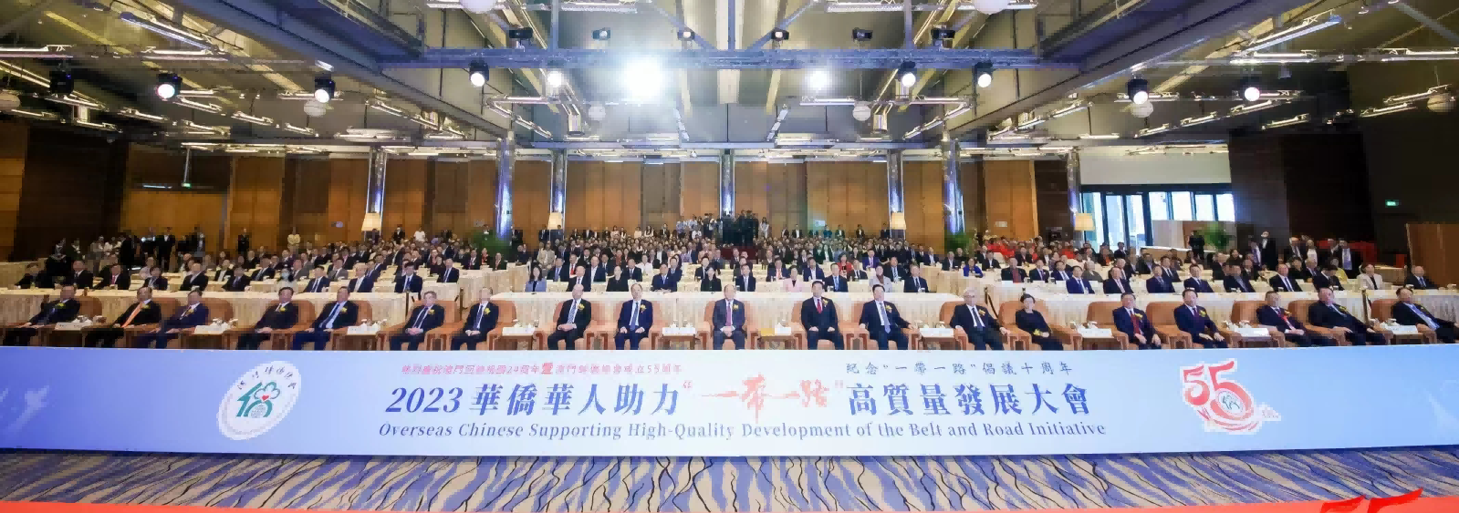 27日下午,由中国侨联和澳门归侨总会共同主办的2023华侨华人助力“一带一路”高质量发展大会在澳门旅游塔举行。澳门特别行政区行政长官贺一诚,中央政府驻澳门联络办公室主任郑新聪,中共中央统战部副部长林锐,外交部驻澳门特派员公署特派员刘显法,中国侨联副主席程学源,中国侨联副主席、澳门归侨总会永远会长刘艺良,澳门归侨总会会长刘雅煌等出席大会并担任主礼嘉宾,来自60多个国家和地区的100多个侨团领袖、青年代表和澳门社会各界人士500余人共襄盛事。