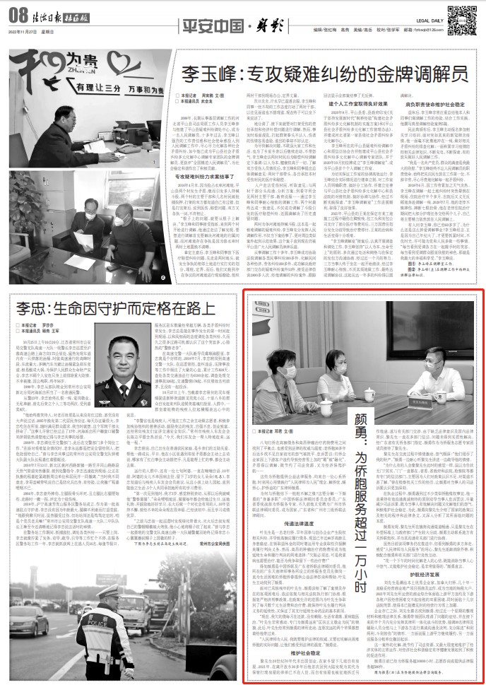为侨服务事迹得到了《人民日报》(海外版)、《法治日报》的报导