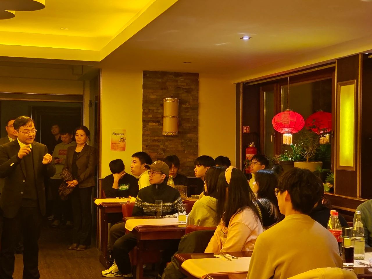 在富特旺根应用科技大学,代表团与方莉教授等华侨华人教师及留学生代表座谈交流。该校计算科学、机械工程等专业处于德国顶尖水平。上海市侨联一行看望了来自上海理工大学等国内高校的60多名交流学生,介绍了上海推动高质量发展的举措及对人才的需求,对同学们珍惜留学机会、相互关心、努力成才提出了寄语,并预祝新年快乐。