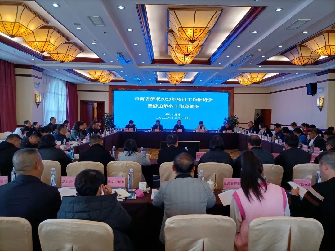 为总结交流全省侨联系统项目工作执行情况,推进全省基层侨联组织建设、侨胞之家和口岸为侨服务工作站建设工作,12月15日,云南省侨联2023年项目工作推进会暨沿边侨务工作座谈会在保山腾冲召开。全省16个州(市)侨联负责人及相关业务人员,25个沿边县(市)侨联负责人,保山市各县(市、区)侨联负责人,云南华商公益基金会和苗圃行动云南办事处负责同志,近80人参加会议。省侨联副主席、党组成员徐盛兴参加会议并作总结讲话,保山市人大常委会一级巡视员、致公党保山市委主委寸时庆出席会议并致辞,腾冲市委常委、统战部部长孟继早出席会议。会议由省侨联基层工作部部长李爱民主持。
