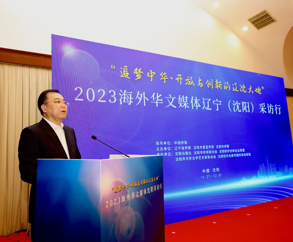 初冬的沈阳,天高气爽,瑞雪铺装。11月28日,由中国侨联指导,辽宁省侨联、沈阳市委宣传部、沈阳市侨联、鞍山市委统战部、鞍山市委宣传部、鞍山市侨联主办的“追梦中华·开放与创新的辽沈大地”2023海外华文媒体辽宁采访行在沈阳市启动。来自马来西亚、澳大利亚、俄罗斯、美国、德国、加拿大、法国、埃及等国家和地区的15家海外华文媒体和5家涉侨中央媒体代表参加本次活动。