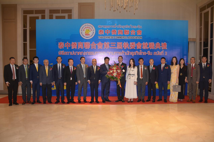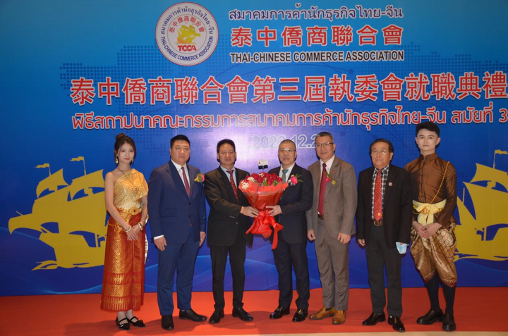 泰中侨商联合会第三届执委会就职盛典于2023年12月23日晚6时在泰国中华总商会光华堂隆重举行。邝锦荣博士蝉联第三届主席,泰国国务院第一副总理兼商业部长普坦·威乍耶猜阁下、泰王国阿伊瓦特查克潘亲王、中华人民共和国驻泰国大使馆刘敬师侨务参赞、泰国中华总商会林楚钦主席登台见证。泰国皇家、政府、侨界、商界领袖精英、社会名流、泰中侨商联合会和东部经济走廊(EEC)分会、清迈分会、青年委员会的成员莅临出席盛典,冠盖云集,圆满成功。