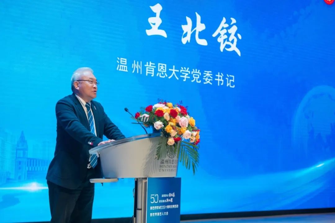 王北铰向远道而来的嘉宾表示热烈的欢迎,并介绍了温州肯恩大学的办学资源、理念和模式。他希望广大侨胞们能够积极投身家乡及温州肯恩大学的建设和发展,携手并进,为丽岙的明天续写更华丽美好的新篇章。