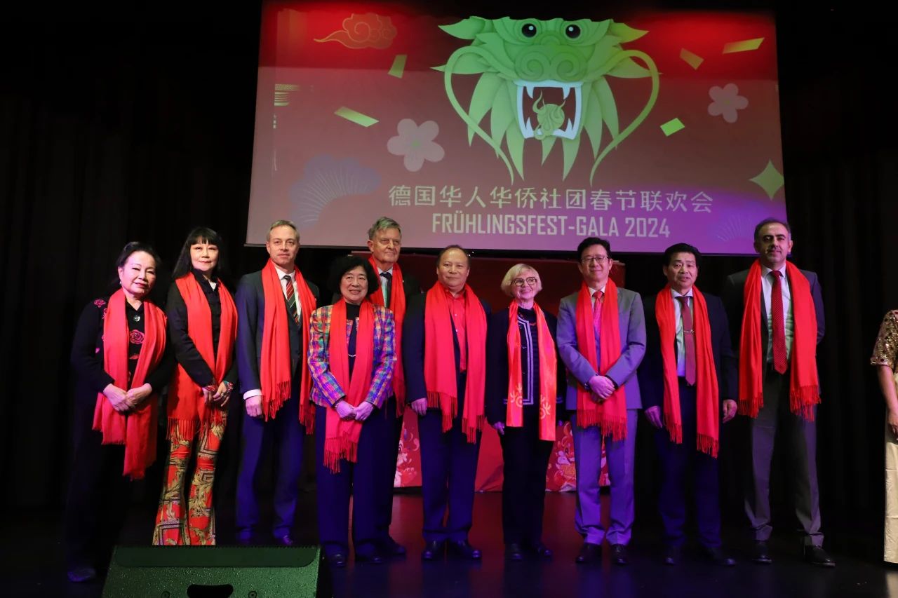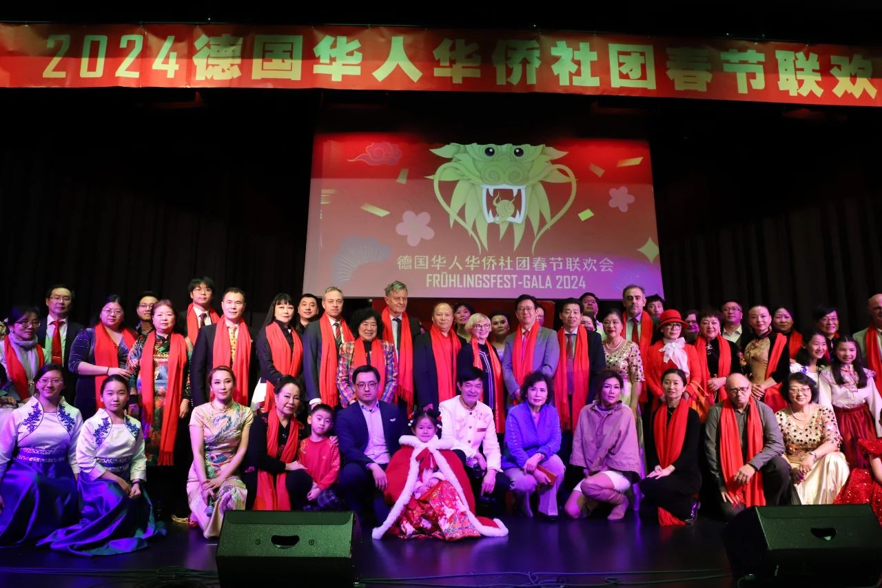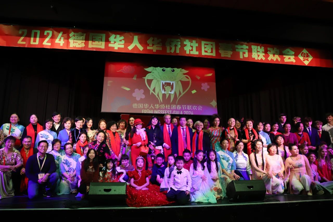 2月11日,农历大年初二,在中国驻法兰克福总领馆指导下,由法兰克福华人参事会、全德华人华侨社团联合会主办的“德国华人华侨社团春节联欢会”于当日下午14时30分开场。中国驻法兰克福总领馆总领事黄昳扬、法兰克福市市长约瑟夫(Mike Josef)、市政委员斯特泽尔(Dr.Renate H.Sterzel)、全德华人华侨社团联合会主席蒋平、法兰克福华人参事会会长杨明等嘉宾及数百名观众到场观看演出。