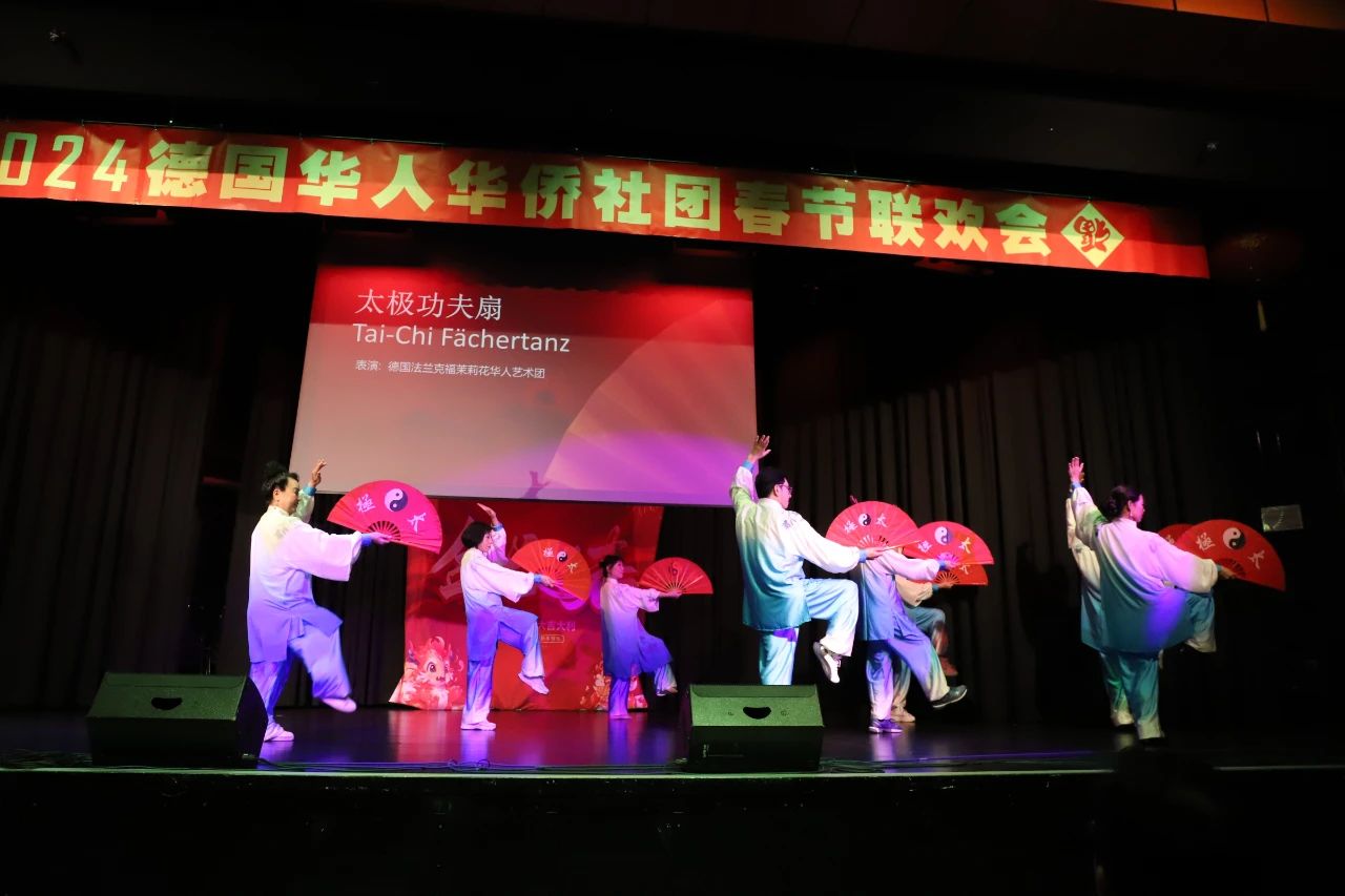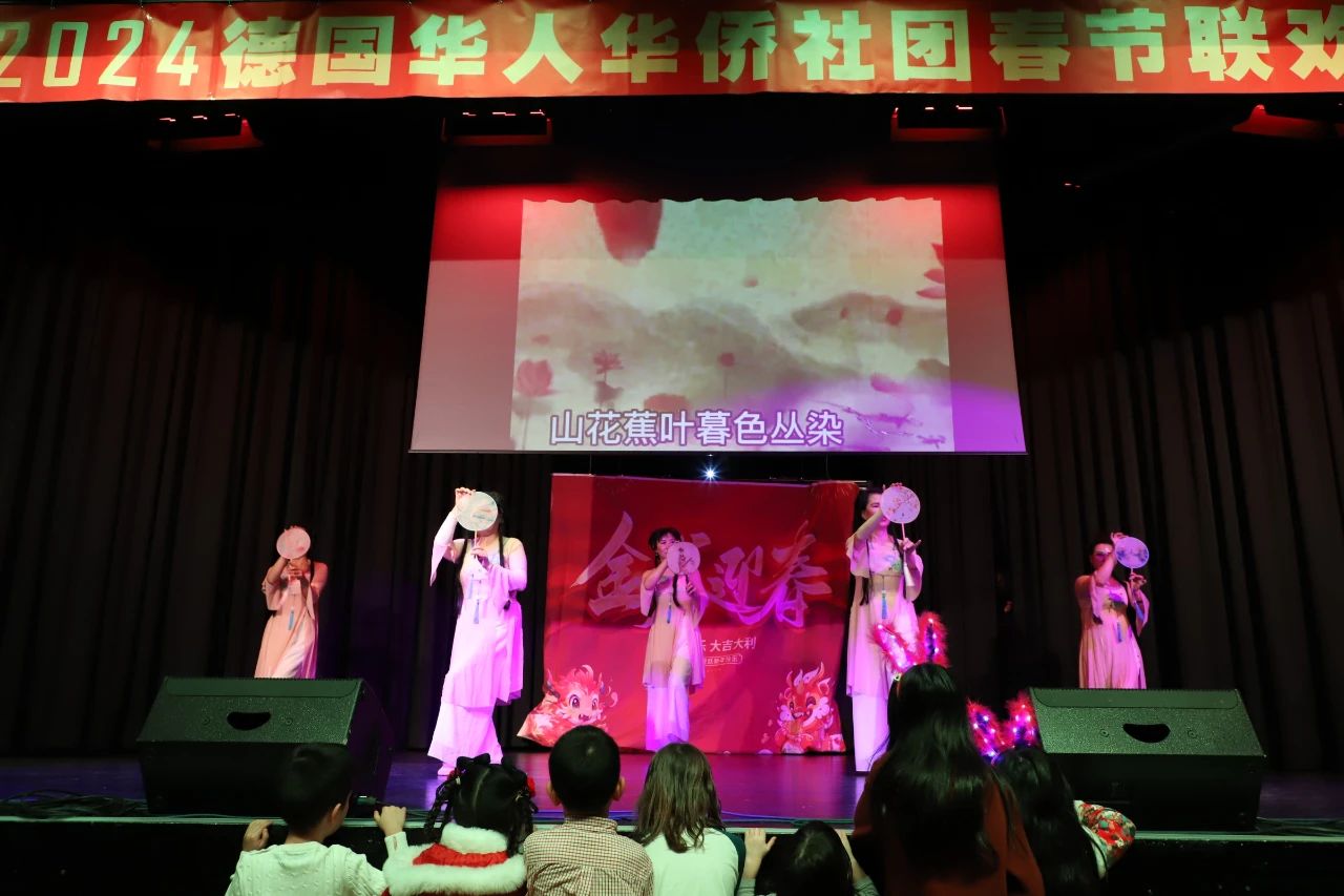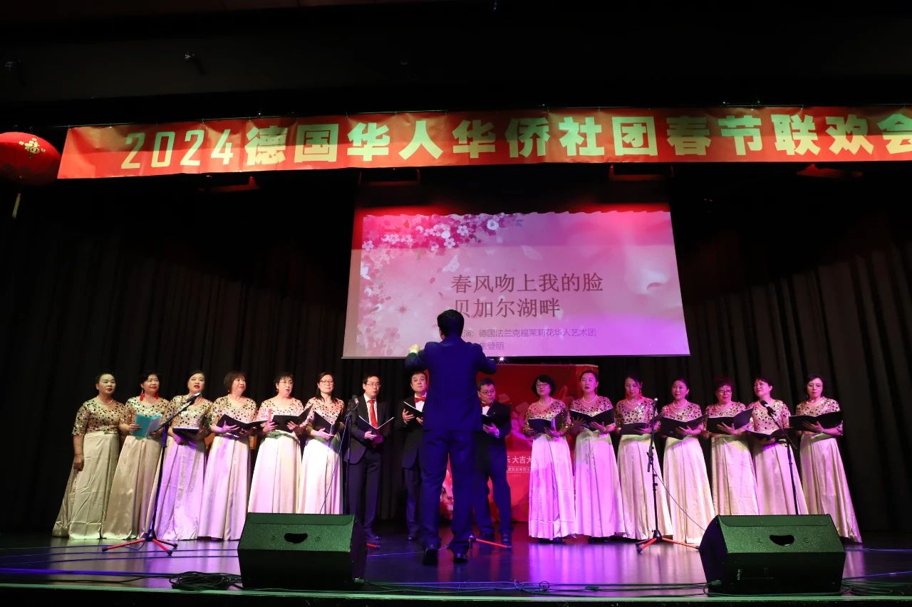 2月11日,农历大年初二,在中国驻法兰克福总领馆指导下,由法兰克福华人参事会、全德华人华侨社团联合会主办的“德国华人华侨社团春节联欢会”于当日下午14时30分开场。中国驻法兰克福总领馆总领事黄昳扬、法兰克福市市长约瑟夫(Mike Josef)、市政委员斯特泽尔(Dr.Renate H.Sterzel)、全德华人华侨社团联合会主席蒋平、法兰克福华人参事会会长杨明等嘉宾及数百名观众到场观看演出。