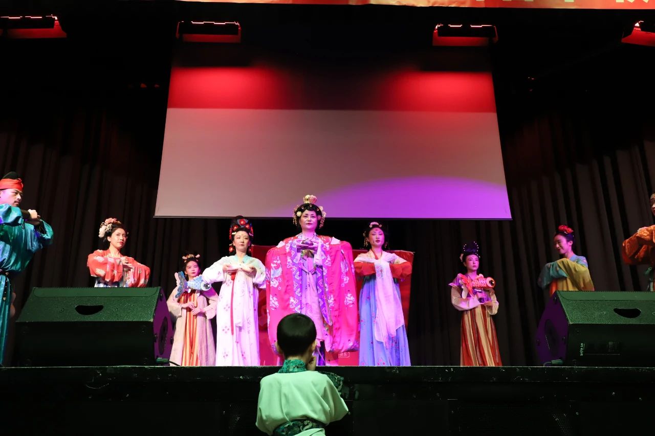 演出开始后,整场联欢会仿佛一幅画卷,在观众眼前徐徐展开。民乐悠扬,舞者翩跹,魔法光影闪耀,汉服秀则让人们仿佛穿越回了古老盛唐。《珠穆朗玛》《那就是我》《贝加尔湖畔》等独唱与合唱曲目的歌声在大厅中回荡,巍巍荡荡,动人心弦。最后,《难忘今宵》的经典旋律将整场联欢会推向终章亦是高潮,唤醒了全场观众心中对故园的思念。