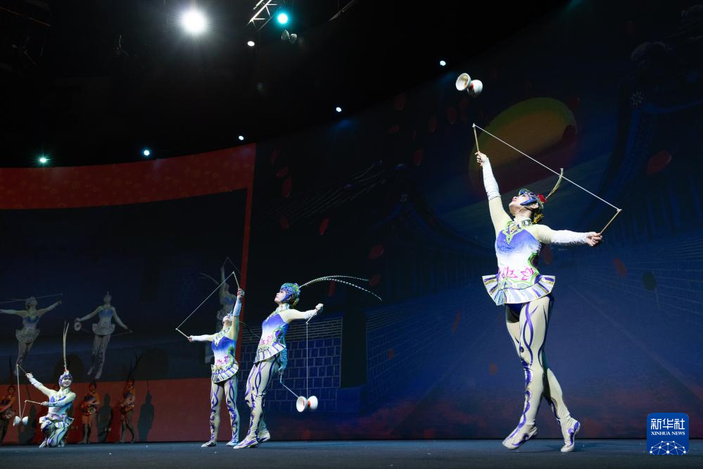 2月24日,演员在荷兰海牙举行的“四海同春”慰侨访演活动上表演杂技。新华社记者 孟鼎博 摄