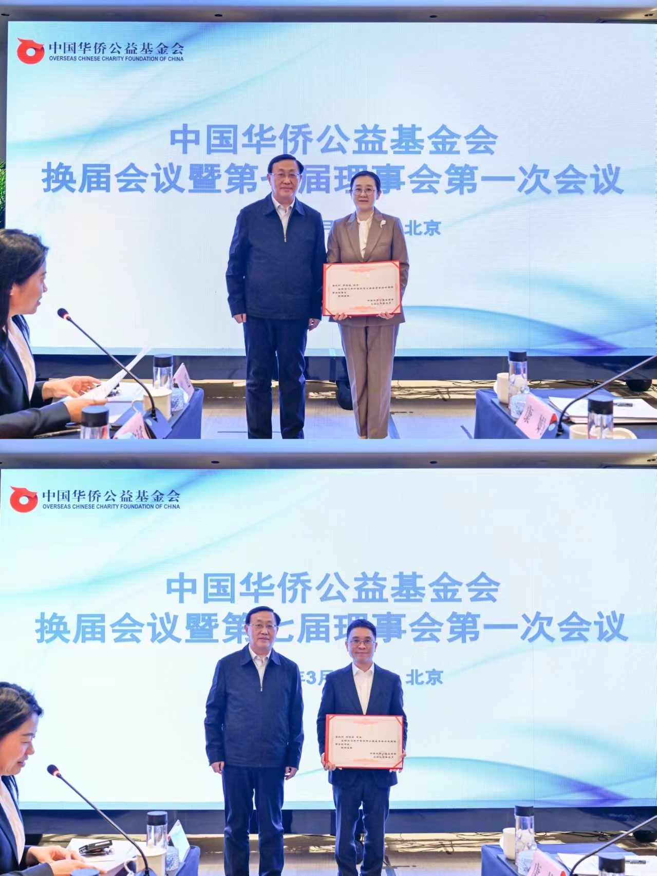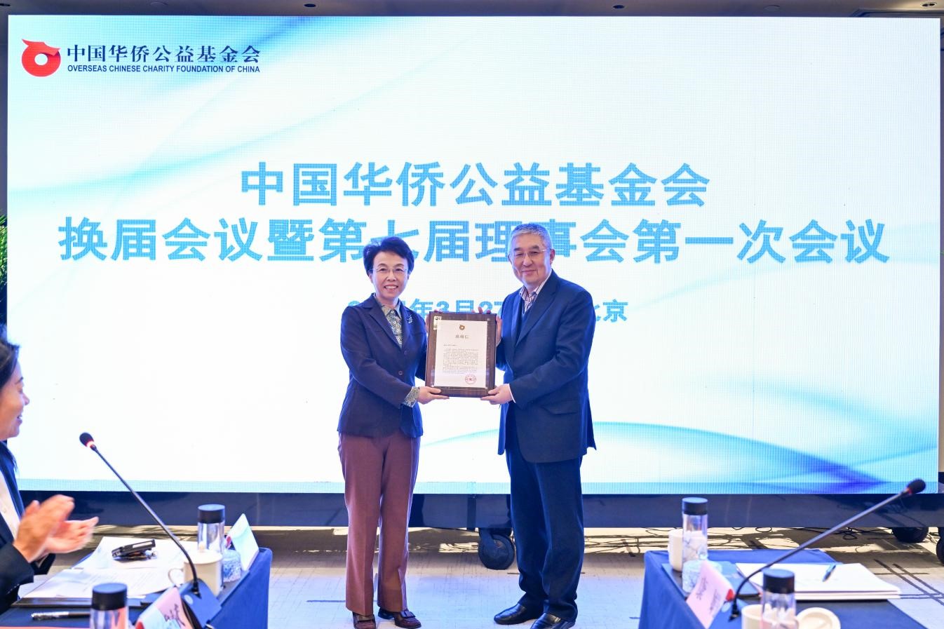 乔卫为第六届理事会理事、监事代表颁发感谢状。组织人事部部长、直属机关党委常务副书记姚林楠出席会议并为七届理事会主要负责同志颁发聘书。会议由中国侨联公益事业管理服务中心副主任雷霆主持。