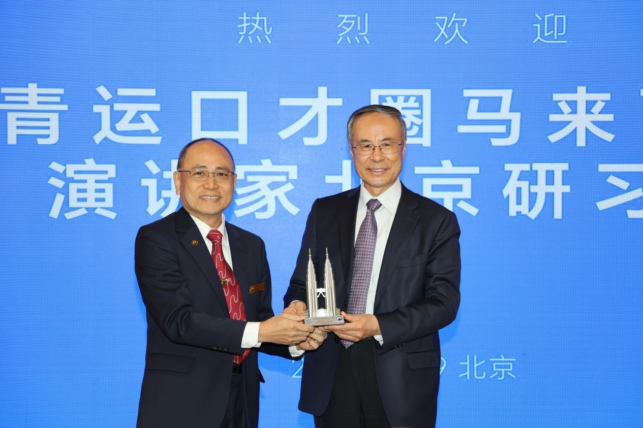 4月9日,中国侨联主席万立骏、副主席程学源在北京会见了马来西亚青年运动总会口才圈北京研习团一行。