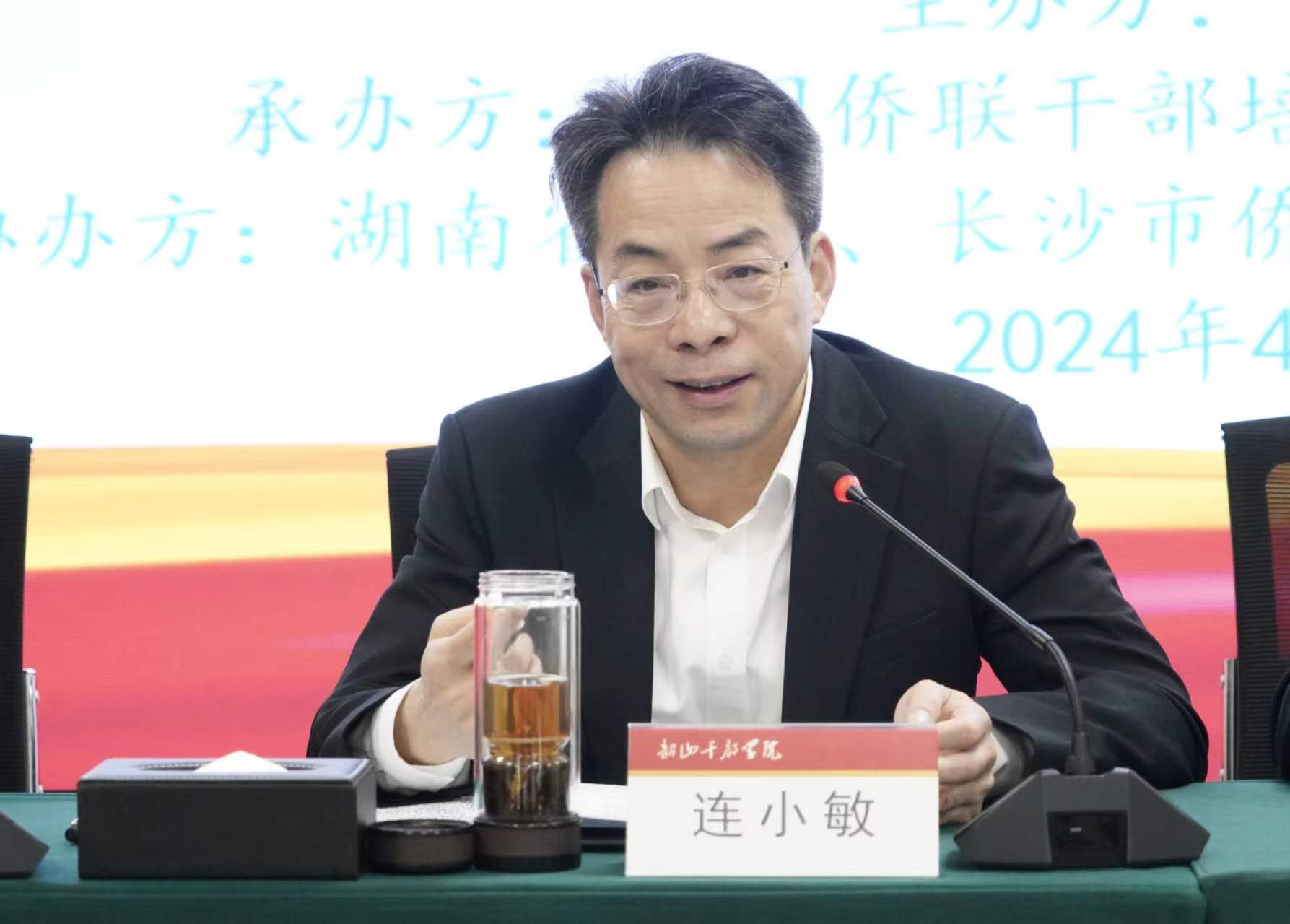 4月11日,中国侨联党组成员、副主席连小敏在湘潭出席中国侨联十一届委员培训班开班式并讲话。湖南省侨联党组书记、副主席孙民生,湖南省委党校副校长、韶山干部学院院长蔡文辉分别致欢迎辞,中国侨联组织人事部(机关党委)副部长许华坤主持开班式。