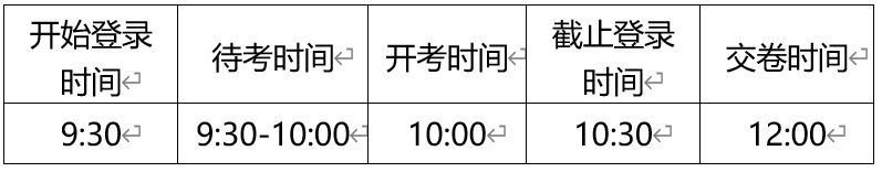 请考生在开考前30分钟依次登录移动端“智考通”、电脑端“智考云”,登录后确保电脑不熄屏、不进入休眠状态及网络正常。本次考试开考30分钟后仍未进入考试系统的,视为自动放弃考试资格,不允许提前交卷,因各种原因延迟进入考试系统的,或在考试中途强行退出系统的,由考生自行承担责任。超过截止登录时间,还未通过人脸认证的考生视为自动放弃考试资格。
