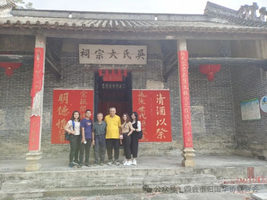 马来西亚侨胞吴某强(右三)与家人一行回到家乡宗祠祭祖