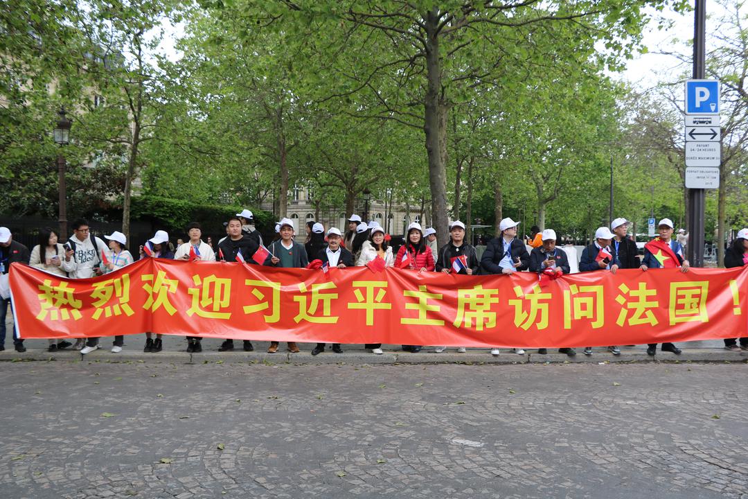 旅法华侨华人和中国留学生们纷纷涌上街头,在道路两旁舞龙舞狮、敲锣打鼓、载歌载舞,热烈欢迎习近平主席的到访。