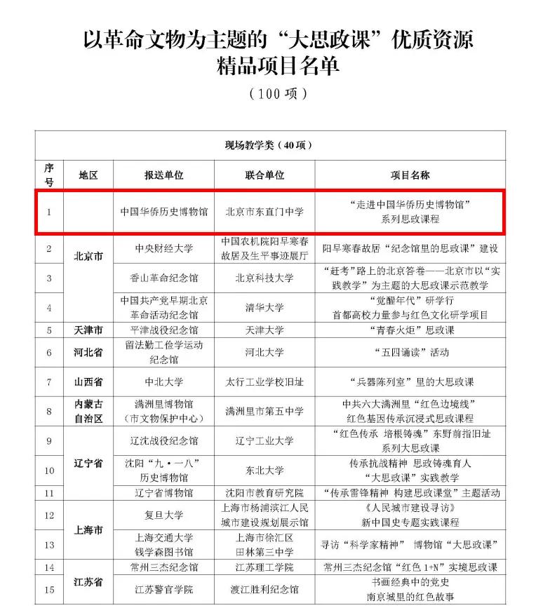 报告指出,“侨博思政课”入选国家文物局、教育部100个推荐项目名录。11月27日,国家文物局、教育部共同发布以革命文物为主题的“大思政课”优质资源项目,公布了10个示范项目、100个精品项目名单。“走进中国华侨历史博物馆”系列思政课程入选以革命文物为主题的“大思政课”优质资源精品项目名单。