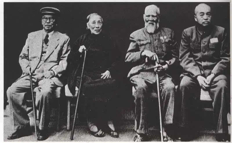 陈嘉庚与彭德怀(右一)、何香凝(左二)、司徒美堂(右二)合影