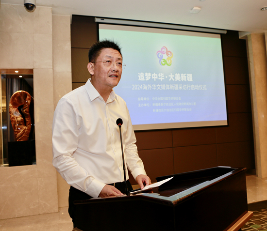 采访团团长、中国侨联信息传播部部长左志强,新疆自治区侨联党组书记、主席任澄,新疆自治区党委宣传部常务副部长赵江涛出席启动仪式并致辞。新疆自治区侨联党组成员、副主席米海尔古丽·阿吉主持。